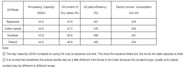 Below features are based on oil plants above the average quality smoothly and continuously squeezed after such pretreatments as screening, husking, flaking and cooking, etc.