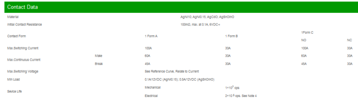 - Operate/Release Time 5ms. typical/1.5ms. typical