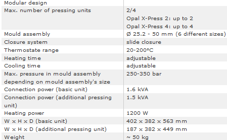 • Opal X-Press 2: basic unit extendable with 1 additional pressing unit