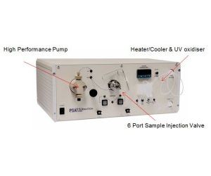 Integrated High Performance Liquid Chromatography Pump, High Pressure Sample Injection Valve, UV Lamp Oxidising and Heating/Cooling Module. The PSA 10.820 Modular Interface (MI) extends the range of applications to any Millennium Merlin or Excalibur instrument. The MI is configurable and may include; LC pump, injection valve, UV cracker, heater and cooling modules.