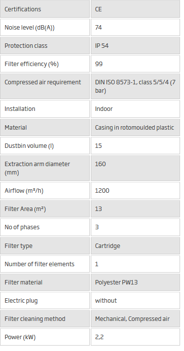 - Third party approval for welding fumes category W3 according to EN 15012-1