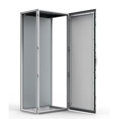 - Delivery: Frame with fitted door, rear panel, roof panel, bottom plate, mounting plate and door frame. Delivery also includes earthing bolts. Delivered on a pallet which is identical to the width of the enclosure to allow baying without removal. All packing material is recyclable.