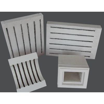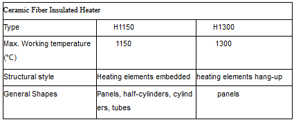 The fiber insulated heater is a heating unit with heating elements and ceramic fiber refractory shapes combined into one package. Ceramic fiber refractory shapes are made from alumina-silica fiber with/or alumina fiber, characterized by light weight, super thermal shock resistance, low thermal conductivity, and low heat storage, ideal for most heating applications. The heaters are available with heating element embedded in vacuum forming or installed on machined ceramic fiber blocks, in form of flat panel, half tube, tube or any custom made shapes.