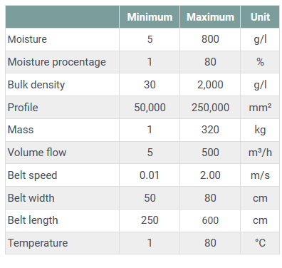 All these requirements resulted to a new type of moisture sensor, the IMP. A large sensor with a measuring surface of 1250x500mm. In this way it doesn’t depends anymore what the size is of the product particles. The surface of the moisture sensor is always completely covered.