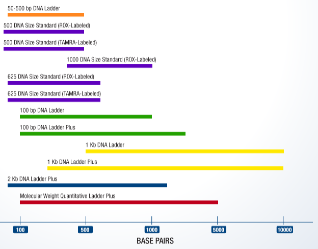 In addition to our line of DNA Ladders and Size Standards, MBR also custom manufactures DNA Markers. The following is a sample list of ladders and size standards currently offered by MBR, along with size ranges each covers: