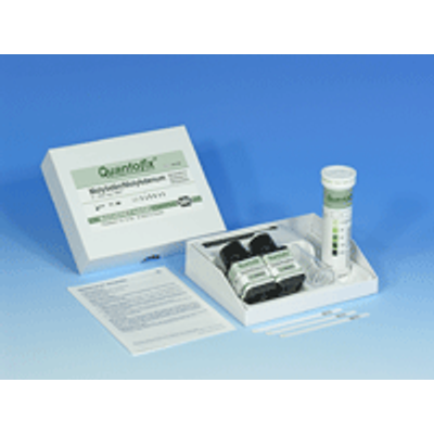 Pack Size: box of 100 strips. Hazard Class /UN Number: Not Restricted. Storage Temp: Room Temperature. Test sticks and reagents for the semi-quantitative determination of molybdenum. Gradation of scale: 0-5-20-50-100-250 mg/l Mo 6+ white to green. Store molybdenum test sticks in a cool and dry place, protected from sunlight and moisture (storage temperature below + 30 ¦C).