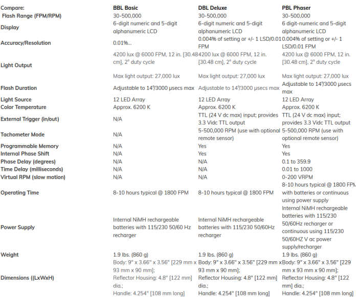 The Basic BBL is designed for simple stop-motion inspection and RPM measurement applications.