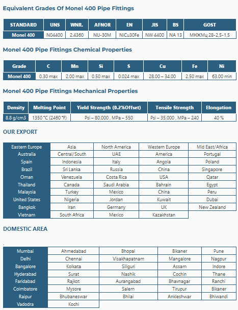 Monel 400 Alloy Pipe Fittings Manufacturers, Monel 400 Alloy Pipe Fittings Suppliers, Monel 400 Alloy Pipe Fittings Stockists, Monel 400 Alloy Pipe Fittings ExportersMonel 400 Alloy Pipe Fittings Manufacturers in India, Monel 400 Alloy Pipe Fittings Suppliers in India, Monel 400 Alloy Pipe Fittings Stockists in India, Monel 400 Alloy Pipe Fittings Exporters in India
