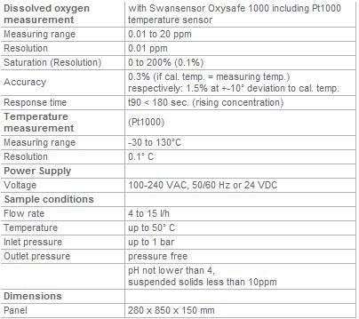 - Swansensor Oxysafe1000 with integrated temperature sensor (Pt1000).