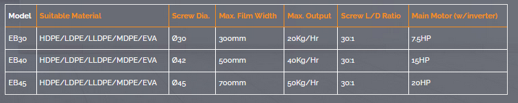 Lung MengModel EB30MI-EB45MI -Mono Tower One Stage Mono Layer Blown Film Machine
