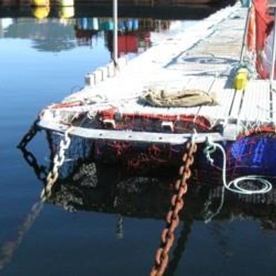 Barge Tarps are smaller than plankton tarps and are used to wrap the entire underside of a floating structure usually once it arrives at a new site. By wrapping it tightly and pumping out as much water as possible the living organisms will soon die of oxygen starvation and begin to rot and fall away from the barges hull. After a few weeks the tarp can be removed and the rotted dead fouling can be allowed to fall away and then the bottom of this float is effectively disinfected of organisms from another site that may possibly have harboured harmful pathogens or a virus that could otherwise cause problems to the new stock grown at this new site.