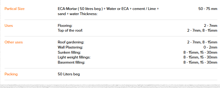 Using ECA in screed systems reduces weight by around upto 60% compared to sand cement and anhydrite screeds.