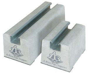 Each mortar block is dip coated to form a highly water repellent seal. Combined with the micro-bubble infusion our blocks withstand all weather conditions and do not deteriorate or breakdown unlike wood, foam or soft rubber blocks. The U-channel is made from an extremely corrosion-resistant hot dip coated steel. Testing has shown our rust resistant channel to be 20 times tougher than galvanized steel. This means that our supports will not rust and will not damage your pipes. The channel easily and quickly secures the A-Rise Support patented pipe clamps and most other standardized pipe clamps. Use the channel specifications on the right and compare them to your preferre pipe clamps. The channels are an integral part of the block and will not come loose or separate from the block ensuring years of reliable, secure support.