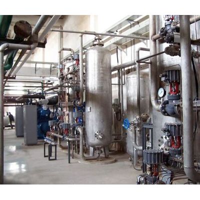 The first step of volume reduction is a two-stage compression. With a dry-running piston compressor, the carbon dioxide coming from fertilizer unit is compressed to one-sixteenth of the original gas volume. After the CO2 compressor, the gas passes through Deodorizer’s consisting of two vessels, substances influencing odor and taste are removed, with identical plant design, the only difference between the purifier and the dryer is the filling with special activated carbon. After this, the gas passes through drying unit of the CO2 recovery plant. It consists of two adsorption tanks filled with drying agent molecular sieves In order to remove the residual moisture from the gas, the carbon dioxide flows through one tank while the other tank is regenerated by the heater. In the next phase, the CO2 is liquefied in a shell and tube heat exchanger and inert gases like O2 and N2 are removed.