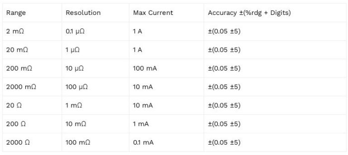 - Resolution of 0.1μΩ on 2mΩ range