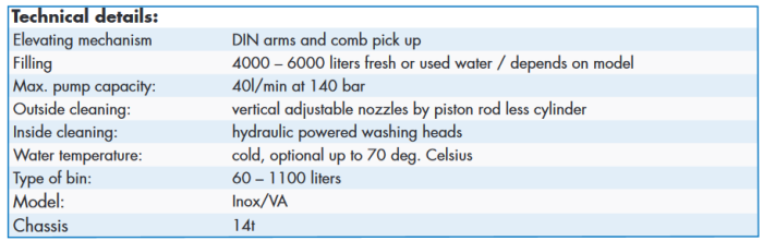 Closed system.Filling via Storz C-connection. Used water will be collected and  ould be disposed over a canal, after  approval.Capacity ca. 40 2wheel/hr, ca. 20 4wheel/hr.