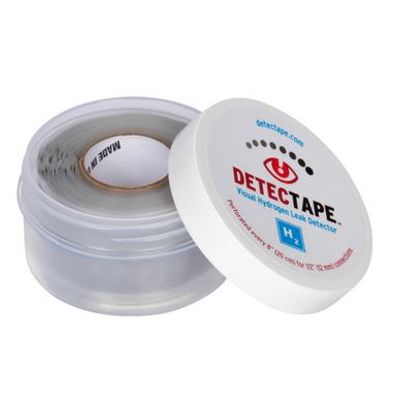 Self-fusing silicone wraps designed to detect hydrogen based gas leaks in fuel cell, transmission, storage and generation facilities. As gas passes through the DetecTape membrane, molecules react with the colormetric pigment, accumulating over time and changing the tape from translucent gray to black indicating a leak is present.