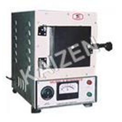 Light weight with ceramic fibre wool insulation ( Instead of brick insulation ). The distinct feature of perforated sheet is to prevent the temperature control unit from very high heat. Heating elements are made of Al wire of coil form embedded on the muffle with high grade refactory cement and backed by high temperature cer-wool insulation which avoids loss of energy. This arrangement will ensure the most uniform kind of distribution of heat. The weight & size of furnance is of one quarter and 30% resp. as compared to brick furnace. A viewing cap is also provided on the door. Temp, control unit consists of energy regulator, fitted in front of furnance with teo pilot lamps. The apparatus is complete with one pyrometer, thermocouple, silver thermal fuse, main lead with power plug to work on 220/230 V. The energy regulator dial is arbitrarily marked 0 - 100 position. This marking does not indicate temperature. It indicated control level i.e. at position 100 max. Electricity is allowed to flow to furnace. Max Temp. 950 degree C working temp. 900 degree C.