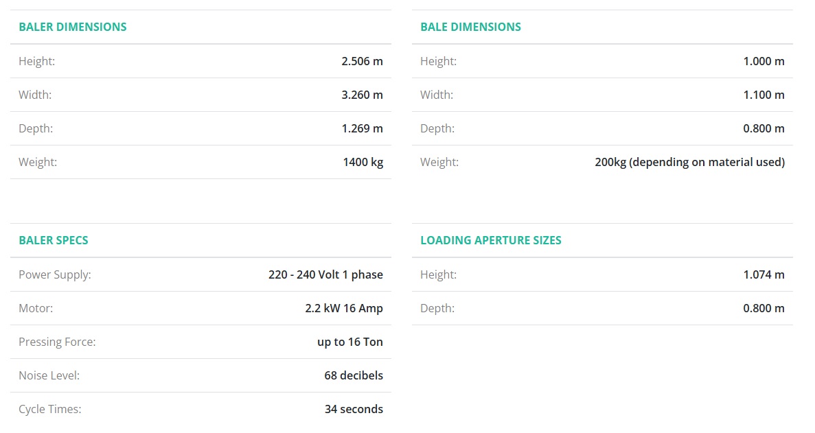 - Makes a 200 kg bale of cardboard