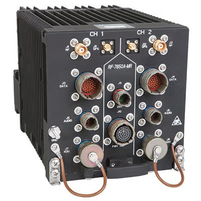 Airborne certified for fixed and rotary-winged aircraft, the RF-7850A-MR provides two wideband radio channels in the same SWaP as a traditional single-channel narrowband radio. It offers multi-channel and multiband capabilities, and adapts with evolving mission needs for enhanced Situational Awareness and ISR.