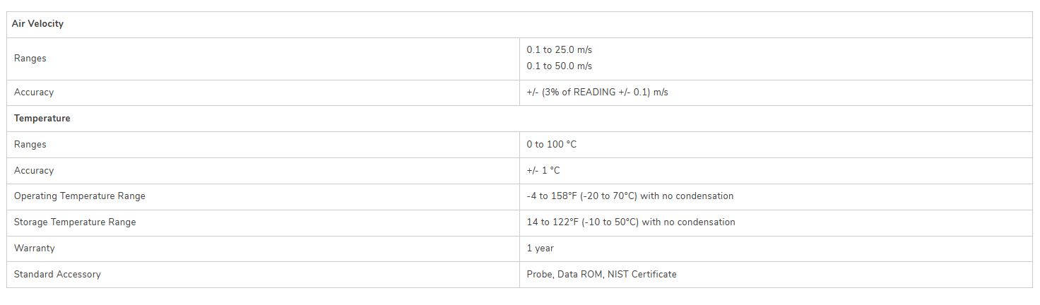 - Accuracy: +/- (3% of READING +/- 0.1) m/s
