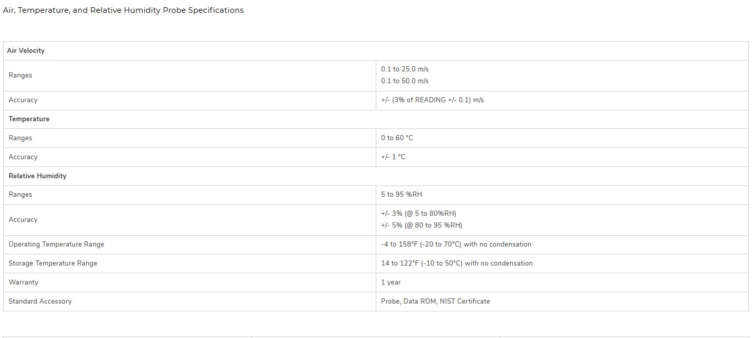 - Multiple probes (Air Velocity, Temperature & Humidity) are available