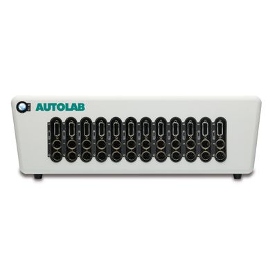 The Multi Autolab is a multi channel potentiostat/galvanostat based on the compact Autolab PGSTAT204. It consist of a Multi Autolab Cabinet which can be fitted with up to 12 M204 modules. Each M204 is a completely independent potentiostat/galvanostat, allowing you to perform different measurements on each channel at the same time. The Multi Autolab can be controlled from up to three different computers simultaneously, allowing to share the available channels among different users. The Multi Autolab instruments can be complemented by a selection of optional modules. Each M204 module can be coupled to one optional module in the instrument. The maximum number of optional modules is 6. Optional modules or additional M204 modules can be installed at any time.