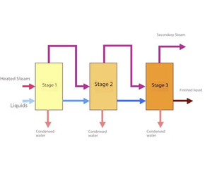 By repeating this steam reuse principle across multiple effects, fresh steam consumption can be further reduced. The total temperature difference is formed between the maximum heating temperature of the first effect and the minimum boiling temperature of the last effect, which is distributed among each effect. As a result, the temperature difference per effect decreases with the increase in the number of effects.