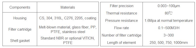We provide filters of different flow according to customer`s requirements for different material, pore diameter, length and quantity of cartridge. Filter applies reasonable fluid mechanics technique, design, manufacturing, inspection and acceptance in accordance with GB150-1998.