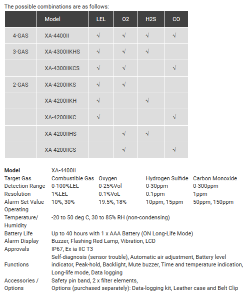 XA-4000II Series range of personal gas detectors are robust and versatile detectors. Depending on the model chosen, gas detectors are available for two, three or four gas applications. These detectors are the ideal choice for confined space applications and with the attachable pump, pre-entry checks into confined space are also possible.