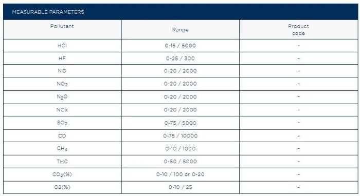Standard Reference CLD method for low & ultra low NOx measurement, IR-GFC for CO, CO2, SO2, N2O, Nox, HF, HCl, TOC and O2 in a single analyzer. Fast and simultaneous measurements of up to 10 gases, available in 2 versions: NOx (CLD) and O2 (Paramagnetic) in 19’’ Rack or Tight box for low and ultra-low NOx monitoring. CO, CO2, SO2, HCl, HF, TOC, N2O (IR) + NOx (CLD) + O2 (Paramagnetic) in Tight box.