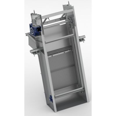 Multi Rake Bar Screen uses equally-spaced inclined bars to arrest fine, medium, and large flowing wastes. The screen is cleaned by a mechanized rake which moves in an upward direction to collect waste to the waste discharge bin/conveyor. Multiple rakes are provided to clean the waste deposited on bars.