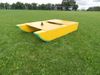 The platform comprises of two fibreglass hulls which ride smoothly over uneven ground minimising the egress of noise into recorded data. The fibreglass hulls are designed to be light but durable with nylon skids to resist abrasive wear. The skids are easily replaceable keeping maintenance costs to a minimum. The hulls are connected by two fibreboard decks held in place with nylon bolts. The decks are manufactured with a regular grid of bolt holes allowing customers to mount a variety of complimentary geophysical instrumentation to the sledge. The decks offer a total area of 2.50m2 for mounting equipment. For ideas on what equipment has previously been mounted onto this platform please see our Multi Sensor Platforms page. The distance between the decks are able to be varied from 0-400mm allowing the operator to adjust the weight distribution across the length of the hulls in order to minimise excessive localised wear on the skids, as well as compensate for lateral forces caused by uneven friction across the skids (crabbing).