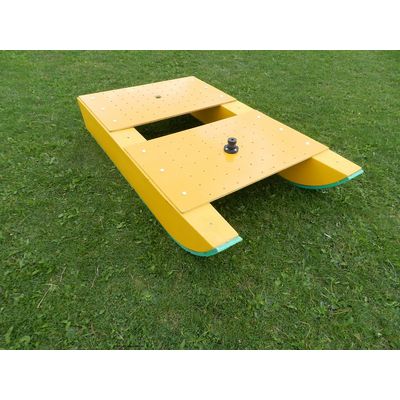Each deck has an 80mm hole at the centre to fit a tow turret. The location of the tow turret distributes the towing force near the centre of the sledge reducing the amount of stress transferred to the hulls and dampening any change in weight distribution caused by the independent movement of the tow vehicle. The tow turret has a subsidiary function as a GPS receiver mount. For instruments which require significant offsets between components (i.e. the Geonics EM34-3) two platforms can be towed inline by installing a second tow turret on the rear deck.