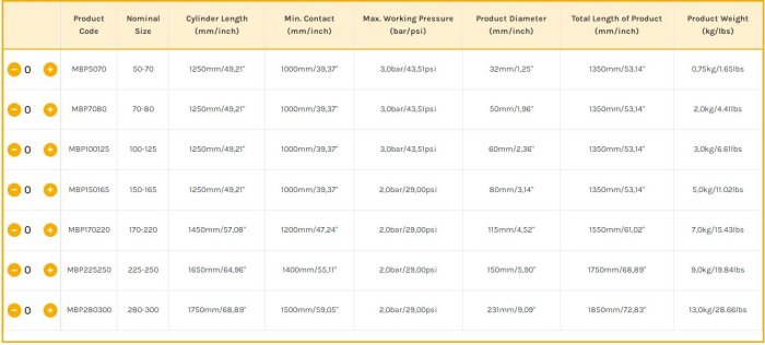 PLUGLINE Multi Size Bendy Packers are designed and used for repairing leakage of curved joints and other curved parts of pipelines. And these parts must have an angle of less than 90°. PLUGLINE Multi Size Bendy Packers are available for pipe diameters from 30 mm (1,18″) to 300 mm (11,80″). Standard working pressures of PLUGLINE Multi Size Bendy Packers are specified as 2,0 Bar (29,00 psi) and 3,0 Bar (43,51 psi).
