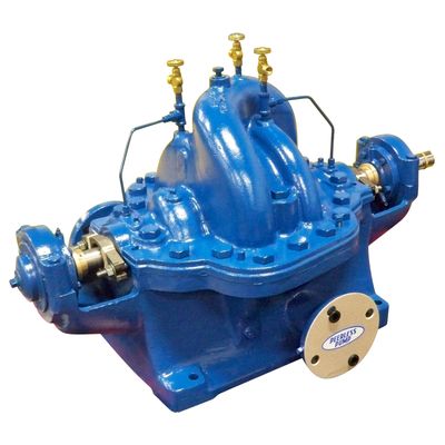The Peerless TU and TUT centrifugal pumps are engineered for durable multi-stage performance within a horizontal split case design. TU pumps feature a two-stage configuration, while the TUT models extend functionality with three, four, or five stages. These pumps can handle capacities as high as 6,000 gpm, reach heads of up to 1,600 feet, and operate under pressures up to 700 psi. They are capable of managing water and clear liquids at temperatures up to 300°F. Standard models are constructed with class 40 cast iron and bronze materials, with options for alternative materials. Precision elements such as dynamically balanced, enclosed type, single suction bronze impellers, and bronze, renewable casing rings ensure low vibration and prolonged bearing life. These features, along with integral bearing bracket supports, guarantee enduring alignment of bearings and rotating components, catering to commercial, process, industrial, and municipal applications.The Peerless TU or TUT pump is a cast iron, bronze-fitted, multi-stage, horizontal split case design. Type TU pumps are a two-stage design, while TUT pumps are three, four and five stage.