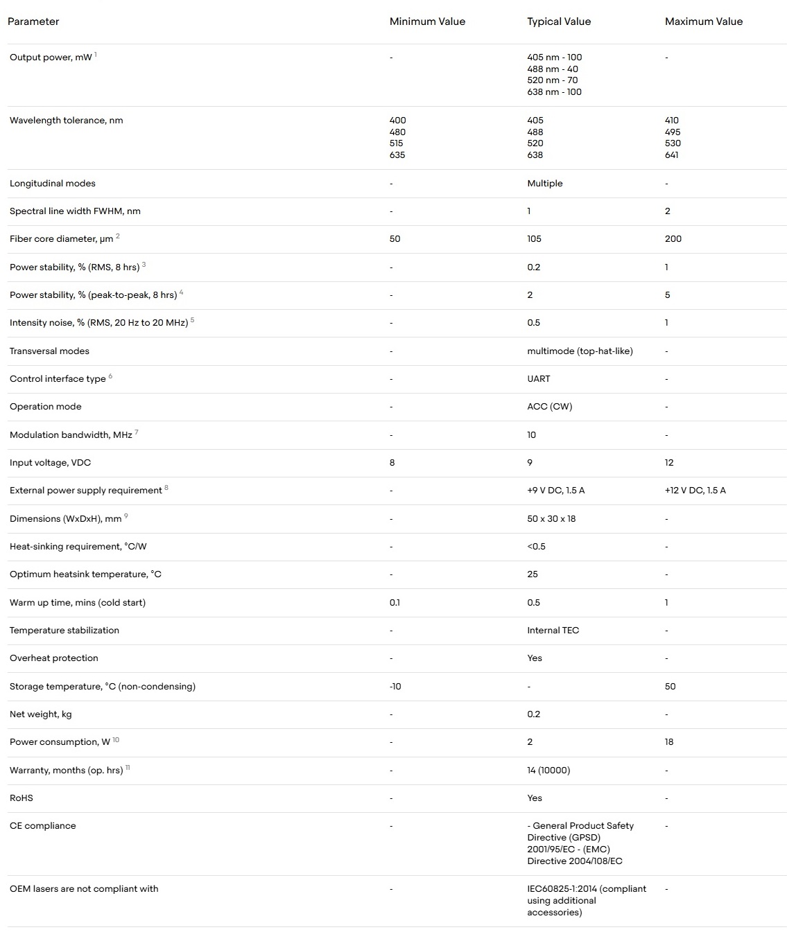 A Multi-wavelengths laser combiner featuring 4 laser diodes integrated within an ultra-compact MM (multi-mode) fiber-coupled `Matchbox` housing. Experience cutting-edge technology with our highly configurable 4-Wavelength Laser Combiner—a compact powerhouse designed to transform your research in life sciences and fluorescence applications. This sleek device seamlessly integrates four distinct wavelengths into a single housing, ensuring unparalleled convenience without compromising performance.