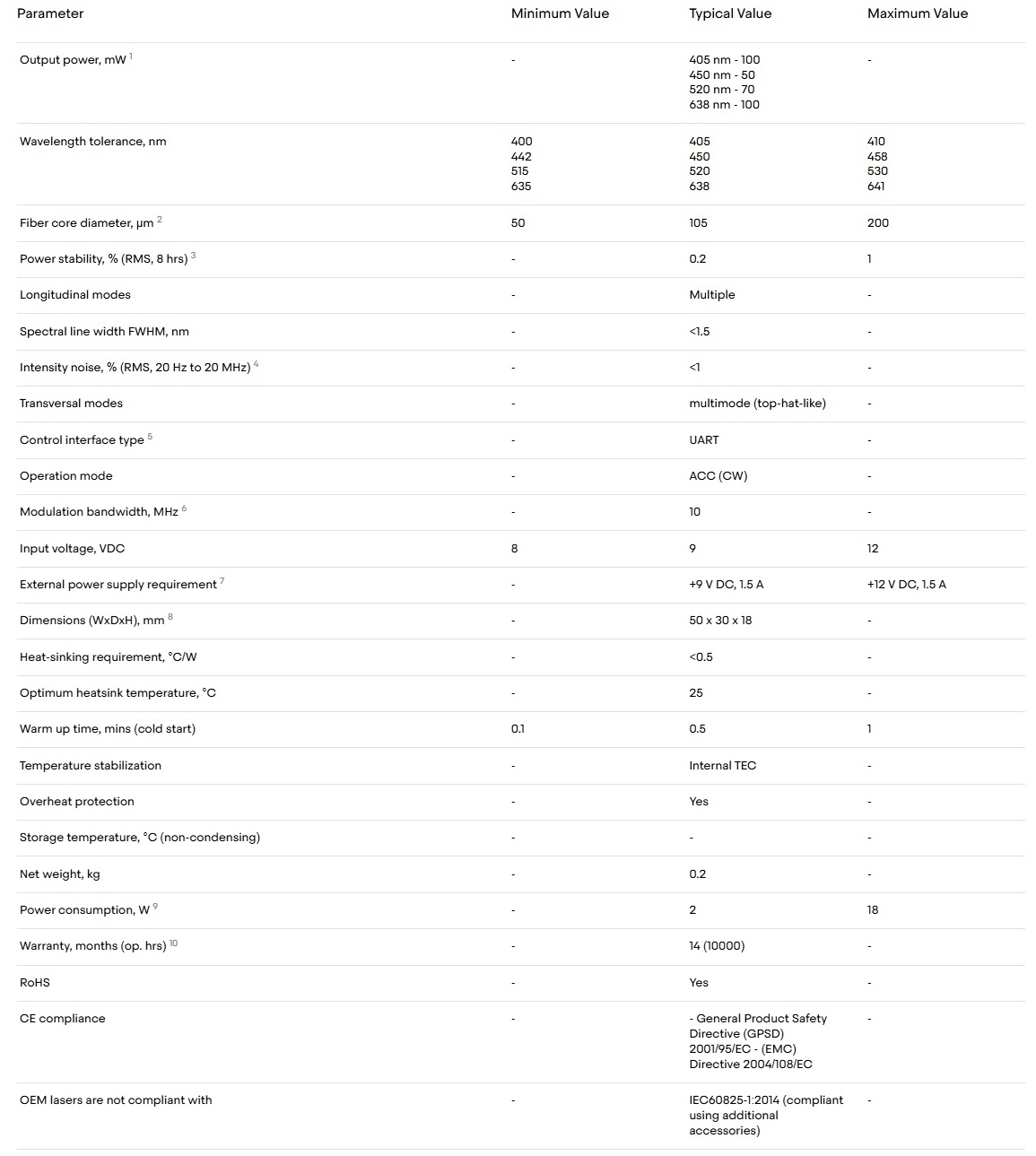 A Multi-wavelengths laser combiner featuring 4 laser diodes integrated within an ultra-compact MM (multi-mode) fiber-coupled `Matchbox` housing. Experience cutting-edge technology with our highly configurable 4-Wavelength Laser Combiner—a compact powerhouse designed to transform your research in life sciences and fluorescence applications. This sleek device seamlessly integrates four distinct wavelengths into a single housing, ensuring unparalleled convenience without compromising performance.