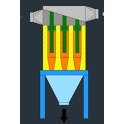 Cyclones are used for separation of mechanical impurities or of transport solid particles out of air stream. Separation of particles is done on the basics of centrifugal force because of which solid particles (which are heavier) are pushed to the inner surface of cyclone. These particles are then pulled down by gravity while pure air is being extracted on the top of the cyclone.
