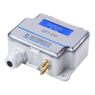 DPT-Ctrl is a multifunctional PID controller with differential pressure or air flow transmitter. DPT-Ctrl enables to control constant pressure or flow of fans, VAV systems or dampers. Its two lined display shows the direction of the control output and the measurement value at the same time. It is possible to select either current or voltage for both the control output and the differential pressure or flow output. The optional autozero function eliminates the need for periodic manual zero point calibration.