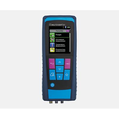 MULTILYZER® STx is a handheld measuring instrument for industrial combustions, emission- and process monitoring. Colour-coded, clearly structured menus ensure maximum ease of use of this high-quality flue gas analyzer. The measured data and calculations are clearly presented. High measuring accuracy, user-friendliness and reliability are some of the outstanding features of this innovative product. Accurate measurements of O2, CO/H2, CO40.000, NO, NO2, SO2, dus, temperatures, pressure (draft) as well as precise calculation of various parameters such as lambda, combustion efficiency (Eta), flue gas loss (qA), dew point, NOx and CO2.