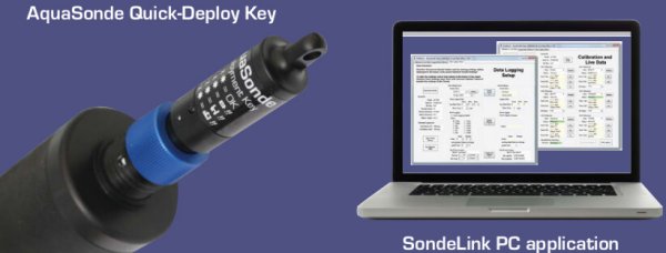 Each Aquasonde is supplied with a QuickDeploy Key, used to initiate the probe’s logging regime and SondeLink PC software for complete logger set up, sensor calibration and data collection.
