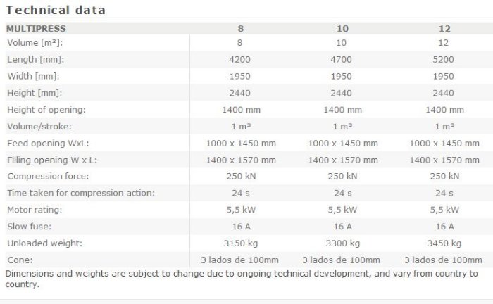 Due to the container volumes from 8 to 12 m³ and the width of 2m, the MULTIPRESS 1.0 suits to narrow surrounding areas. The press technology contains all advantages of the big brother and characterizes due to its efficiency, high compaction ratio and durability.