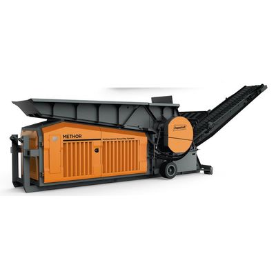 Our multitool Methor offers the widest variety of applications of its class. The shredding of industrial waste, construction and demolition waste, mattrasses, building rubble, biowaste or waste wood, for example, do not pose a problem, but even entangled waste from paper and plastic production, the shredding of rolls or roll goods or magnetic tape scrap and the opening of the yellow waste bags are easy with the Methor. For high-performance process chains, it can be optimally combined, e.g. with a drum screen or the Selector 400 with SWS spiral shaft screening deck.