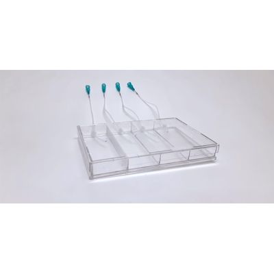 uCase is a multiwell-plate compatible holder to culture up to four uBeat® Platforms, which means 12 micro-constructs. uCase is compatible with all versions of uBeat® Stretch and uBeat® Compress, as well as with their combination (e.g. to compare the effect of different mechanical stimulations within the same experiment). uCase design allows to mechanically stimulate each platform as well as to optically monitor the cultures in a sterile manner.