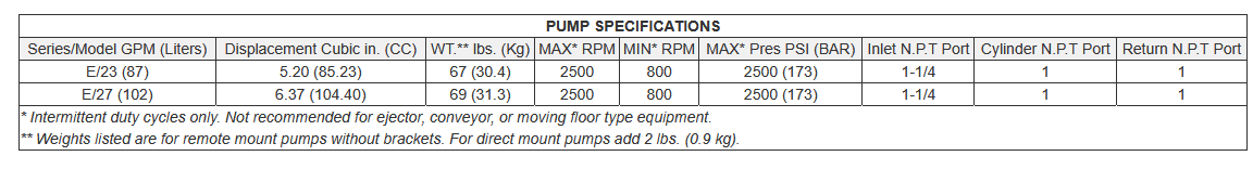The Muncie E Series dump pumps are designed to meet the needs of the dump trucking industry. Muncie dump pumps are available in both direct and remote mount configurations; standard or extra-large port sizes; two or three line plumbing; and air, cable, or lever shift.