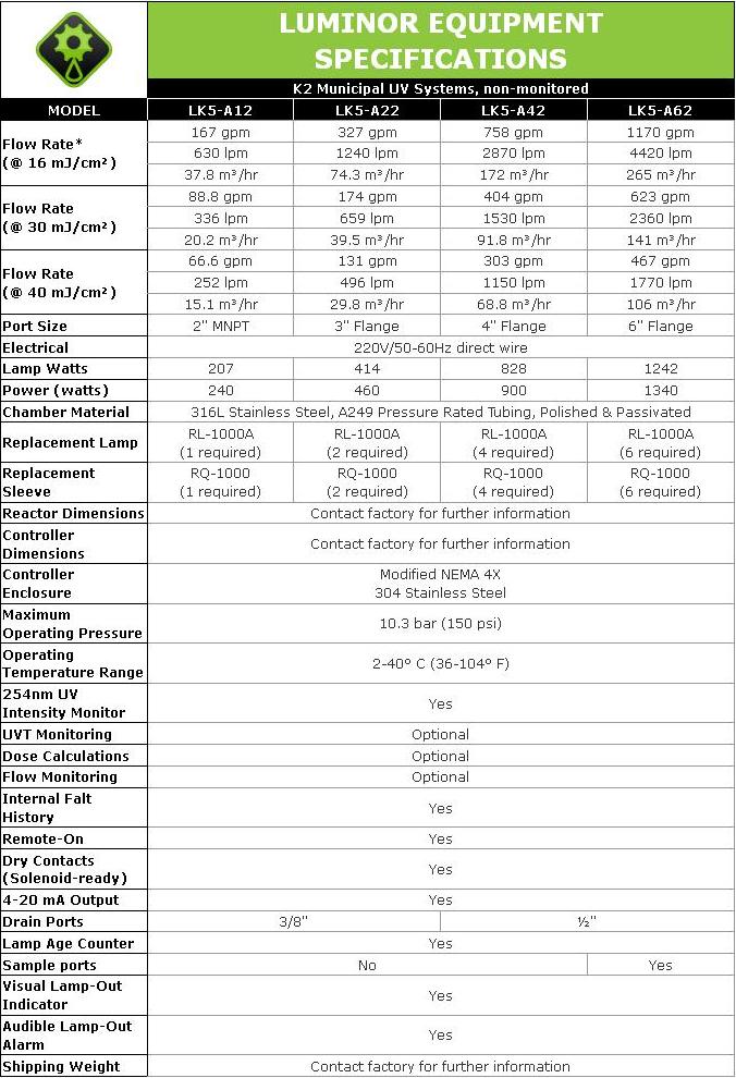 LUMINOR - Model K2 5.0 -Municipal UV Water Disinfection