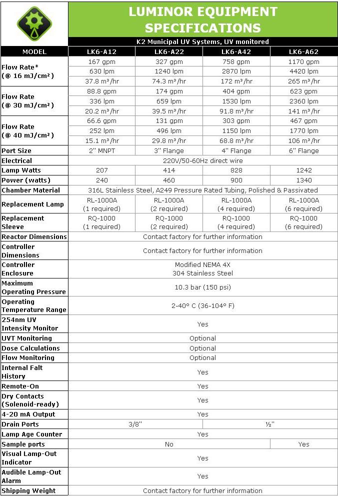 LUMINOR - Model K2 6.0 -Municipal UV Water Disinfection