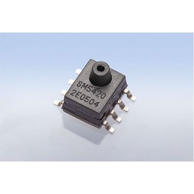 The SM5420E is a non-amplified OEM sensor* for absolute pressure measurement in the SOIC-8 package for SMD mounting. It has the properties of a measuring cell and outputs the differential bridge voltage in mV. The series of SM5420E sensors cover a pressure range of 2 to 7 bar and is available with nozzle or with hole. The absolute pressure sensors consist of a piezoresistive pressure measuring cell, which in the standard version is provided with a protective gel for better media compatibility. The operating temperature range is -40 to 125 ° C. The sensors are suitable for OEM applications for which another amplifier or microcontroller is provided, which further processes the 95 mV signal. The resolution of the sensors is not limited by any A/D conversion. Specifically, the pressure sensors can be used in rapid pressure measurements e.g. in pneumatics or as a pressure switch. They are suitable for high-volume projects.