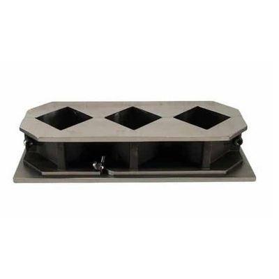 The stainless steel cube mold has a 3-gang diagonal mold that makes 3, 2″ x 2″ compression test cubes at one time. It comes with wing nut clamps that lock the mold to the base and stainless steel thumb screws that secure its halves tightly together. The mold also has a detachable stainless steel base plate.